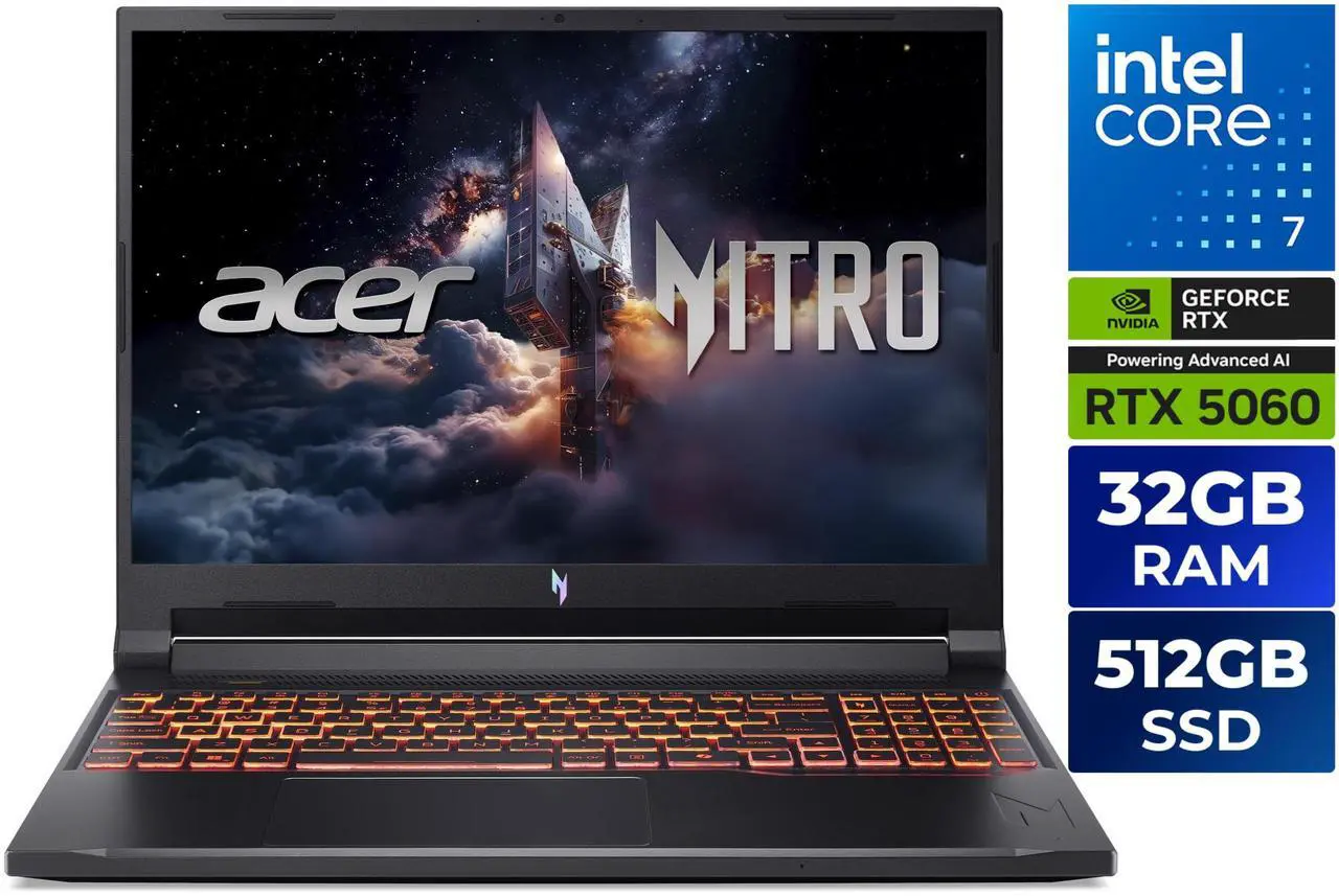 Acer Nitro V ANV16-72-73C7, 16.0″ WUXGA (1920 x 1200) IPS 180Hz Display, Intel Core 7 processor 240H, NVIDIA GeForce RTX 5060 Laptop GPU (MGP 85W), 32GB DDR5, 512GB PCIe Gen 4 S (ANV16-72-73C7)