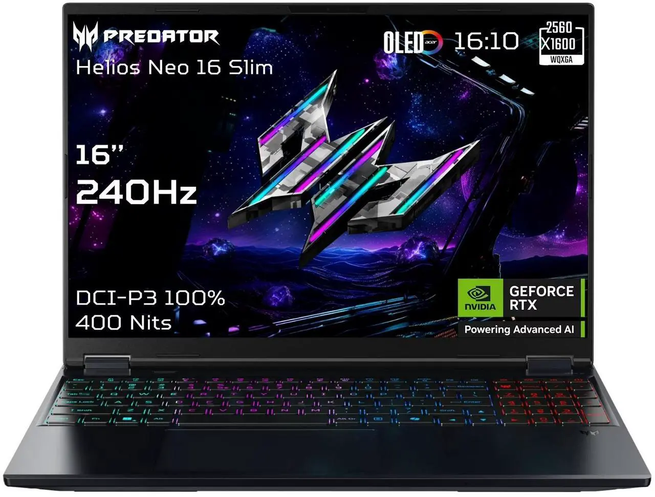 - Display: 16-inch WQXGA (2560×1600) OLED, 240Hz refresh rate, 0.03ms response time, 100% DCI-P3, VESA DisplayHDR True Black 500.