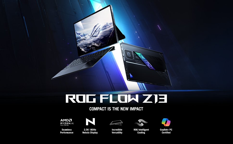 Powered by the AMD Ryzen AI MAX+ 395 processor, 16 Zen 5 CPU cores, and 32GB LPDDR5X quad-channel unified memory, the 2025 ROG Flow Z13 combines portability and power in a sleek 13-inch chassis. Its 2.5K ROG Nebula Display, featuring a 180Hz refresh rate, 100% DCI-P3 color coverage, and touchscreen capability, delivers stunning visuals for gaming and creative tasks. With a 170° adjustable kickstand, the new ROG Flow Z13 effortlessly transforms into a tablet for gaming and creativity on the go.