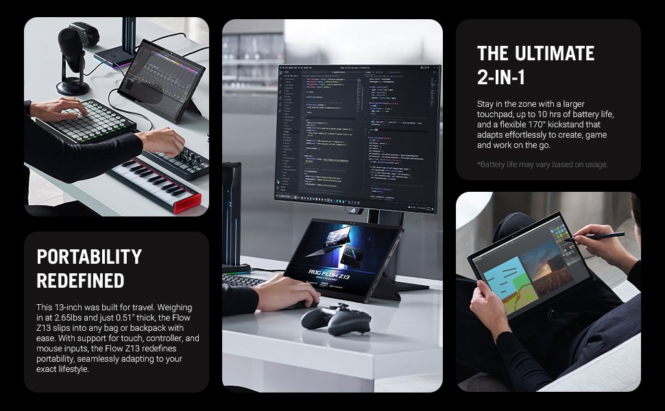 • THE ULTIMATE 2-IN-1 – Stay in the zone with a larger touchpad, up to 10 hrs of battery life, and a flexible 170° kickstand that adapts effortlessly to create, game and work on the go.