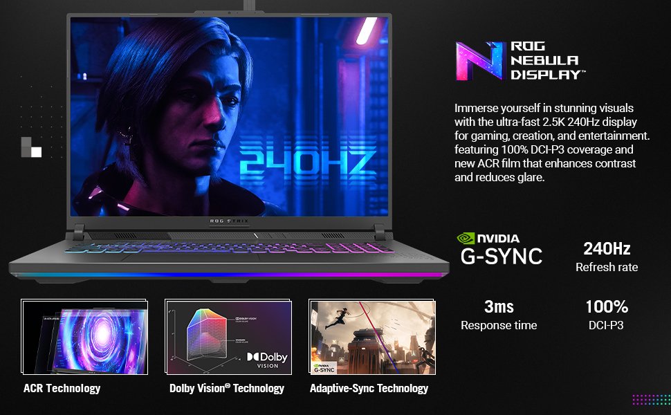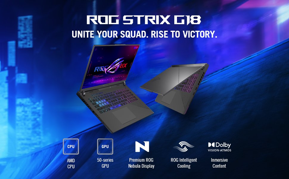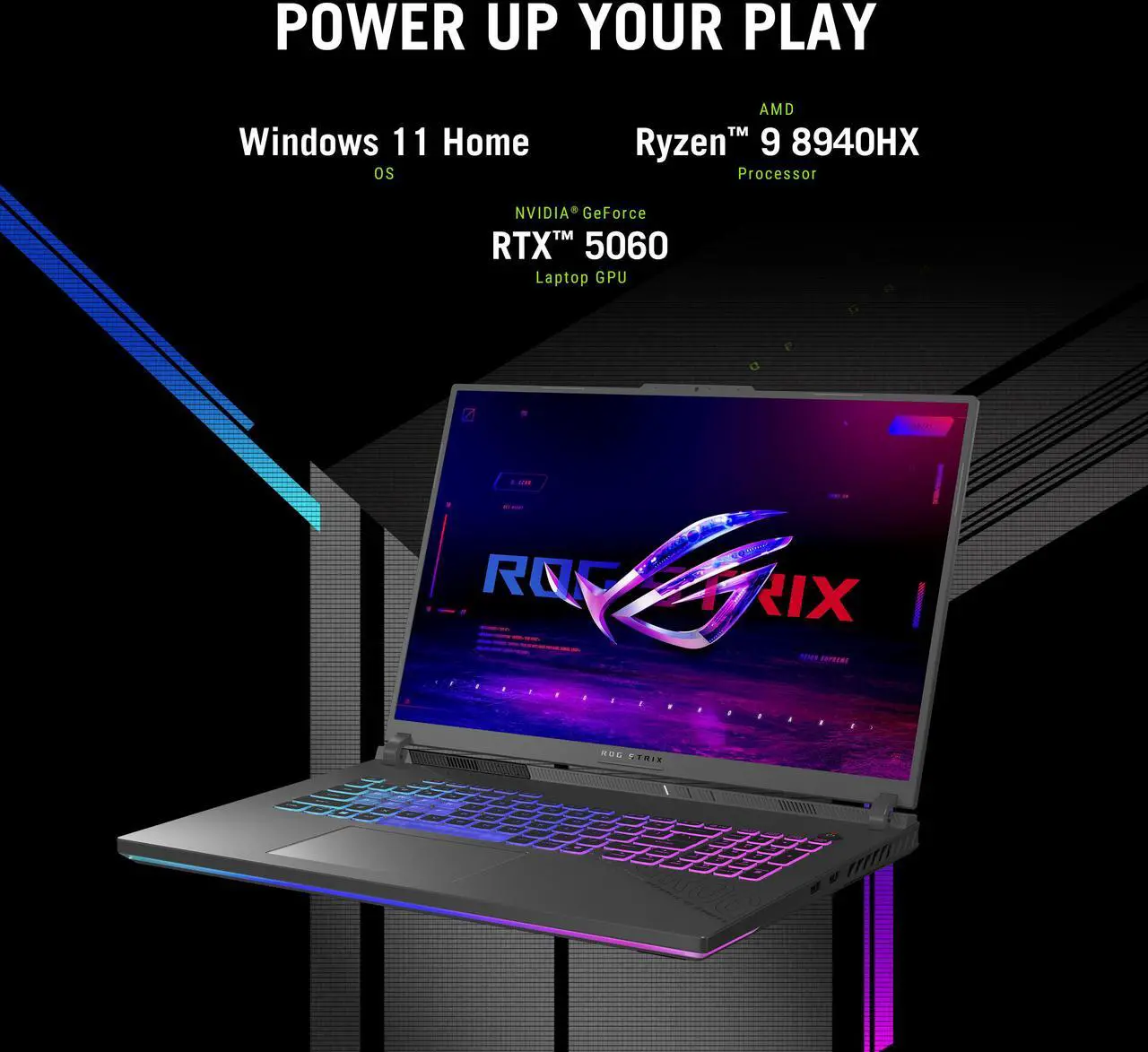 Unlock a next-level gaming experience with the ROG Strix G18. Featuring a 240Hz WQXGA ROG Nebula display, the ROG Strix delivers stunning visuals. Powered by an AMD Ryzen 9 8940HX Mobile Processor and an NVIDIA® GeForce RTX 5060 Laptop GPU, enjoy seamless gaming and creative performance. With 32GB DDR5-5200 RAM, a 1 TB PCIe 4.0 SSD, and advanced ROG Intelligent Cooling, stay at the top of your game. The esports-ready keyboard, Dolby Atmos audio, and customizable RGB Aura Light Bar elevate every moment. Plus, enjoy easy upgrades and 3 months of PC Game Pass for the ultimate gaming experience.