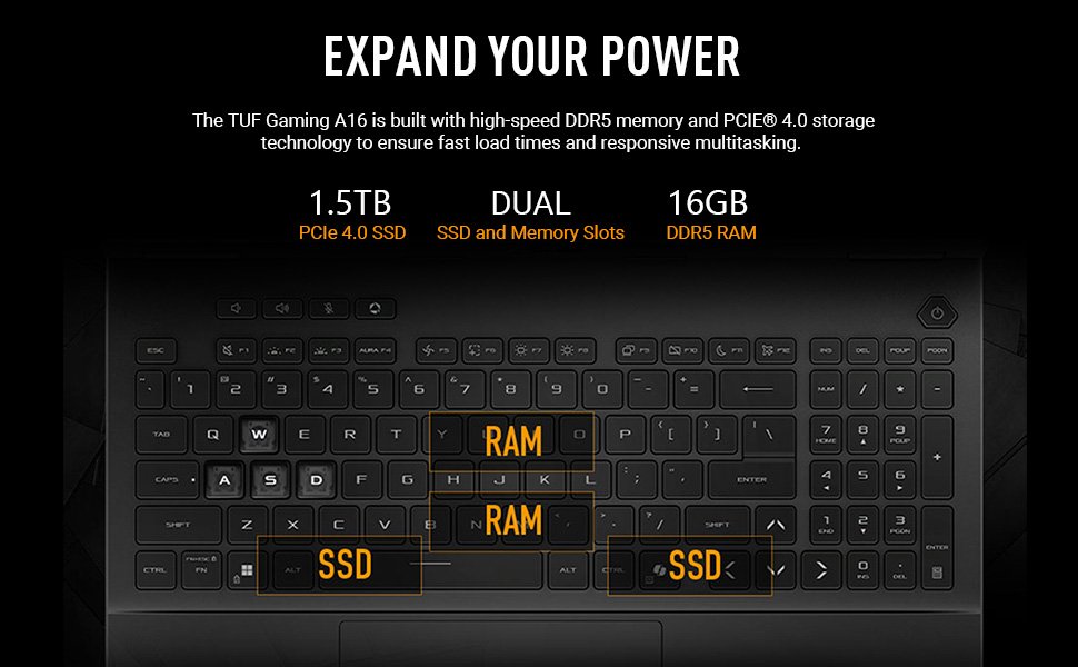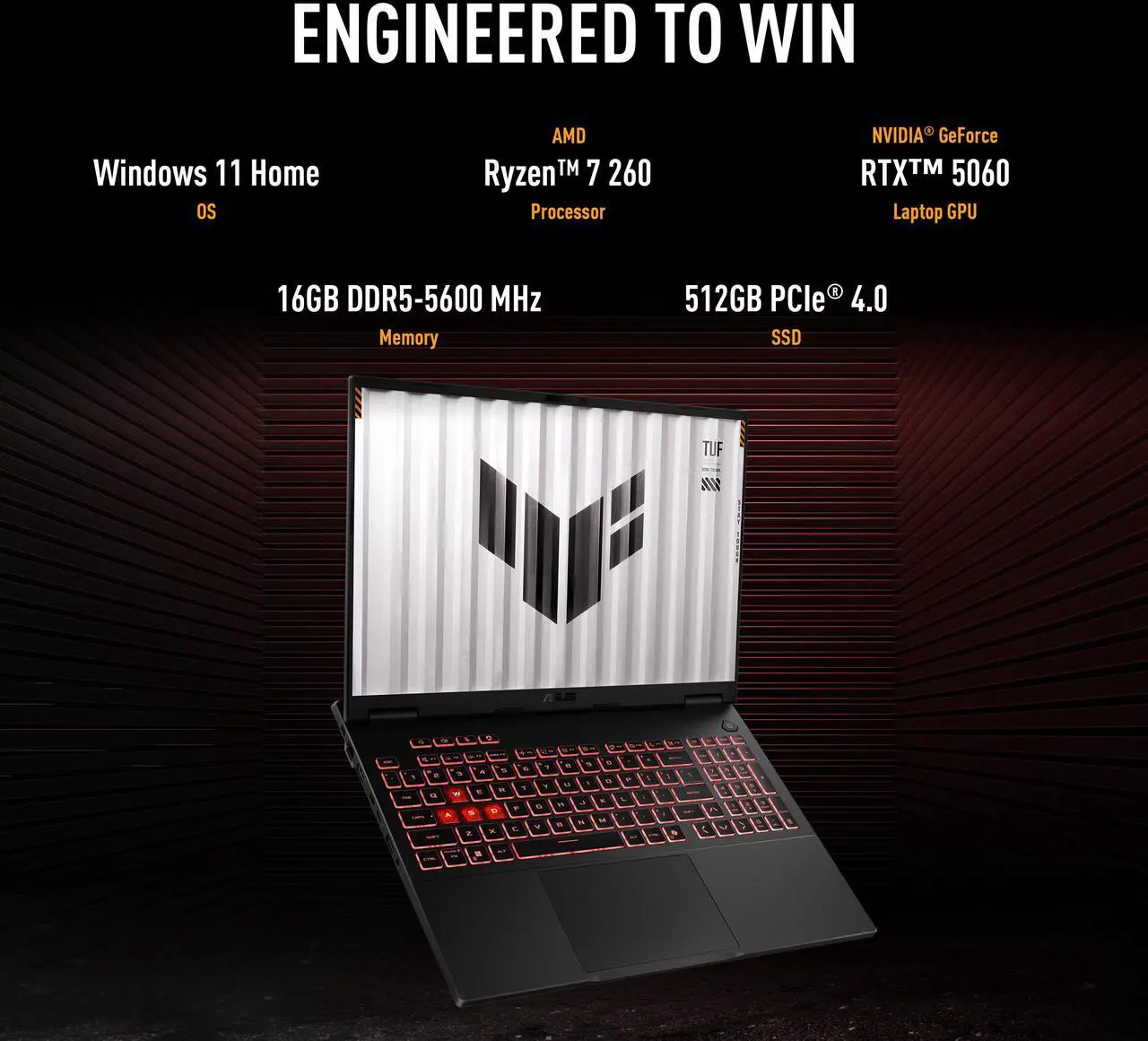 ASUS TUF Gaming A16 – 16″ GeForce RTX 5060 Laptop GPU – AMD Ryzen 7 260 – 16GB Memory – 512 GB NVMe SSD – Windows 11 Home Gaming Laptop – 165 Hz IPS (FA608UM-NS73 )
