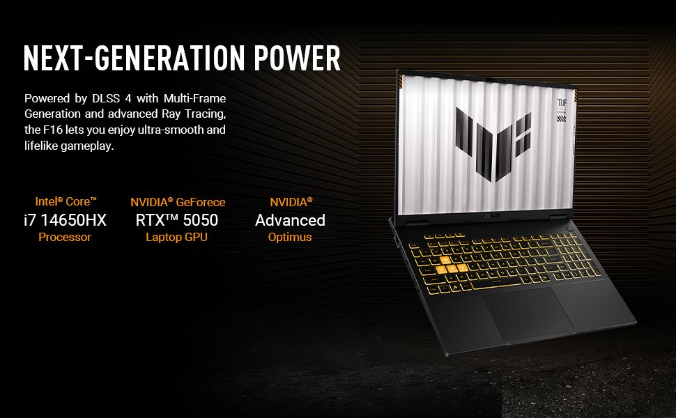 - IMMERSIVE VISUALS – The TUF Gaming F16’s FHD+ 165Hz display with 100% sRGB color draws you into the action. Adaptive-Sync technology reduces lag, minimizes stuttering, and eliminates visual tearing for ultra-smooth gameplay.