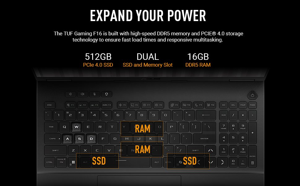 - EFFICIENT COOLING – Equipped with 2nd Gen Arc Flow Fans, full-width heatsink, and full-width vent, the TUF Gaming F16 optimizes cooling performance without extra noise.