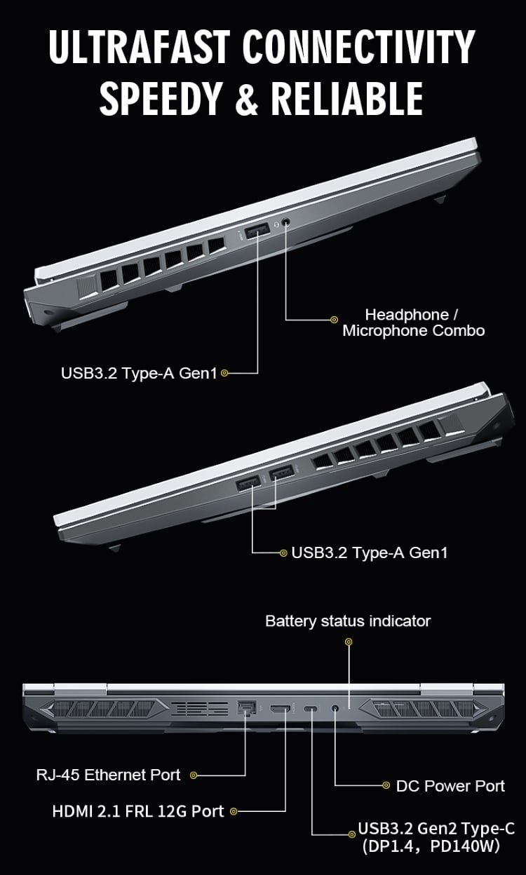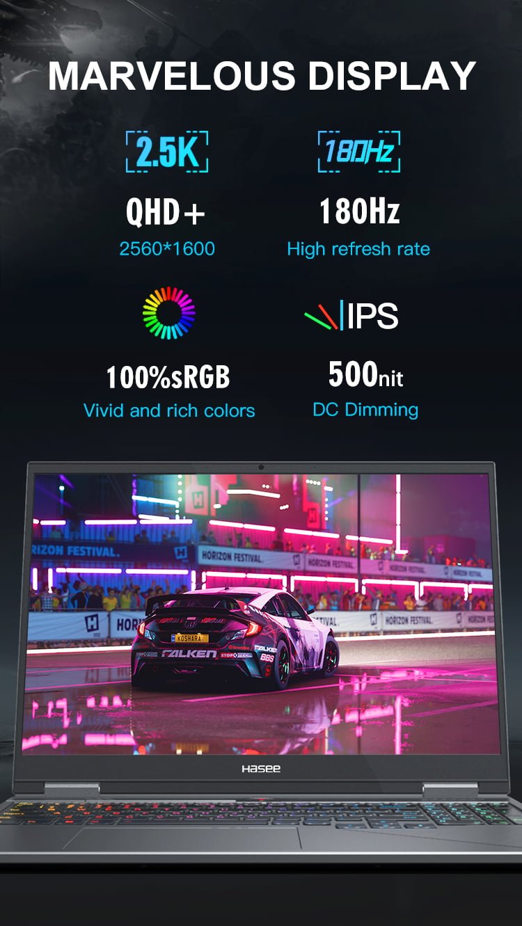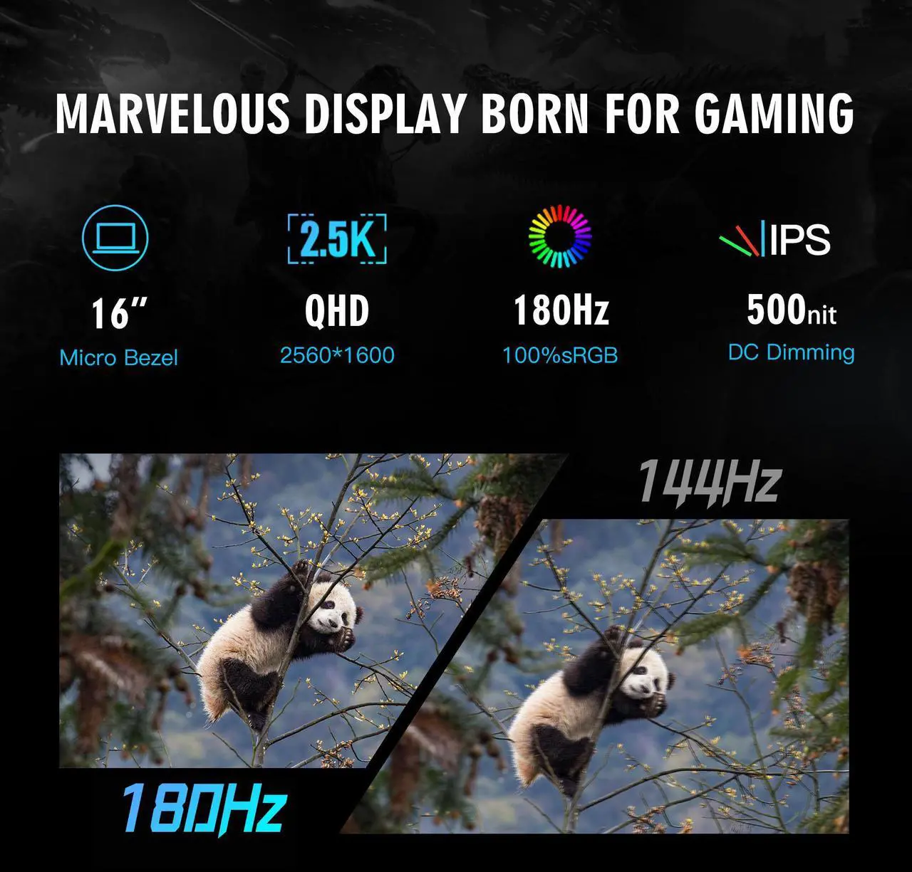 • [Display: 16” 2560*1600 QHD 2.5K resolution and 180Hz refresh rate.