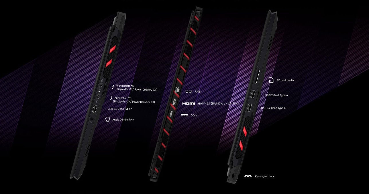 Raider 18 HX AI comes with a comprehensive package of I/O ports to support a variety of devices and display output. Giving gamers maximized flexibility when using the laptop.